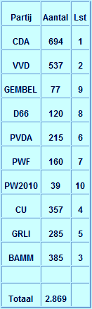 - Totaal hebben 17.962 kiezers zich uitgesproken. De uitslag is als volgt.