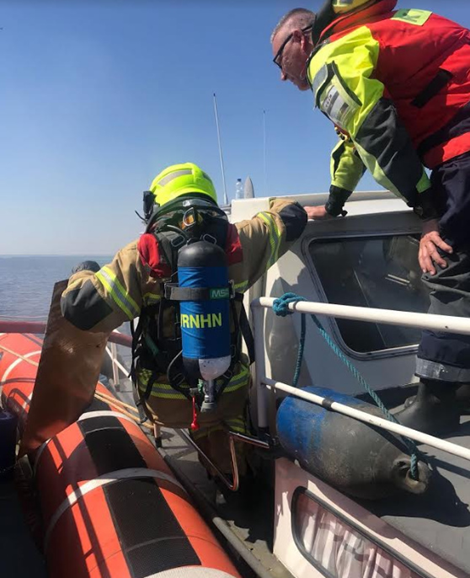 Inmiddels is ook reddingboot Watersport van KNRM Enkhuizen samen met de brandweer van Enkhuizen aan gekomen en word een bluspoging in gezet met een positief resultaat. Wanner even later de brand onder controle lijkt word er onder begeleiding van Rijkswaterstaat koers gezet richting Enkhuizen.