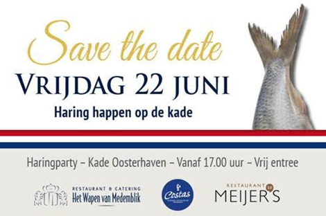 Medemblikker Haringparty Vrijdag 22 juni 17.00 tot 22.00 uur Kade Oosterhaven Medemblik. Bij slecht weer vindt de Haringparty plaats in Het Wapen van Medemblik.
