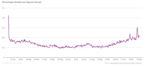 De laatste week van het jaar is, kijkend naar de piekperioden van inbraken, het populairst onder inbrekers. Tijdens de kerstvakantie is er bijvoorbeeld 66% meer kans op inbraak vergeleken met 16 gemiddelde dagen van het jaar. Gekeken naar enkel Kerst en Oud- en Nieuwjaarsdag is er zelfs sprake van een verhoogde inbraakkans van 124% voor deze vier dagen gezamenlijk. Den Hollander ziet hier wel kansen voor verbetering. ‘’Het NIPW liet op 11 december 2018 in een persbericht weten; onderzoek te hebben gedaan naar het gedrag van woonconsumenten tijdens de feestdagen. ![]()