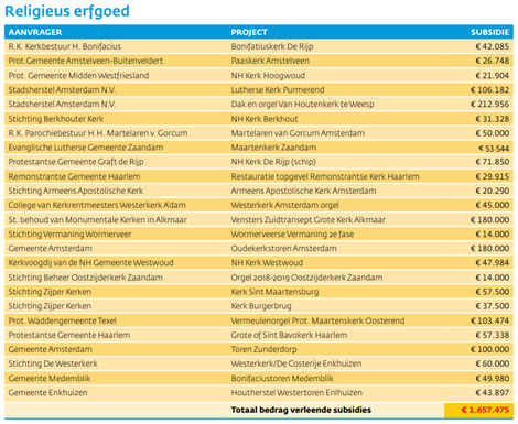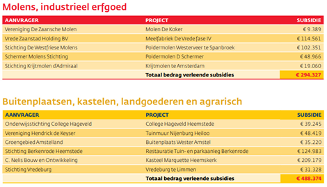 Er is een grote behoefte aan financiële bijdragen voor restauratieprojecten. Dat blijkt uit de vele subsidieaanvragen die de provincie de afgelopen jaren heeft gehonoreerd. De subsidie is bedoeld voor de categorie rijksmonumenten zonder woonfunctie zoals kerken, molens en industrieel erfgoed. Deze categorie beslaat ongeveer 30% van de 14.000 rijksmonumenten in Noord-Holland. Ook organisaties die zich bezighouden met monumentenzorg konden subsidie aanvragen. De provincie heeft hiervoor gekozen omdat deze organisaties projecten oppakken waarbij reguliere restauratie en herbestemming en beheer gecombineerd worden.