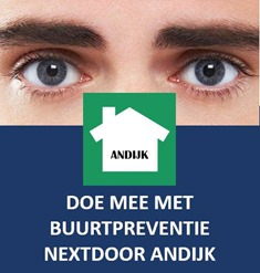 Deelnemers aan Nextdoor Andijk – Dorpsraad Andijk Buurtpreventie? Mail naar dorpsraadandijk@gmail.com met opgave van naam, adres en gsm-nummer.