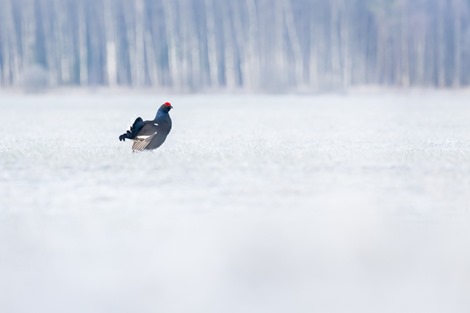 Het winterse weer is bij ons ver weg en daarom even een winters beeld, een ‘eenzame’ korhoen op een besneeuwd veld in Estland.