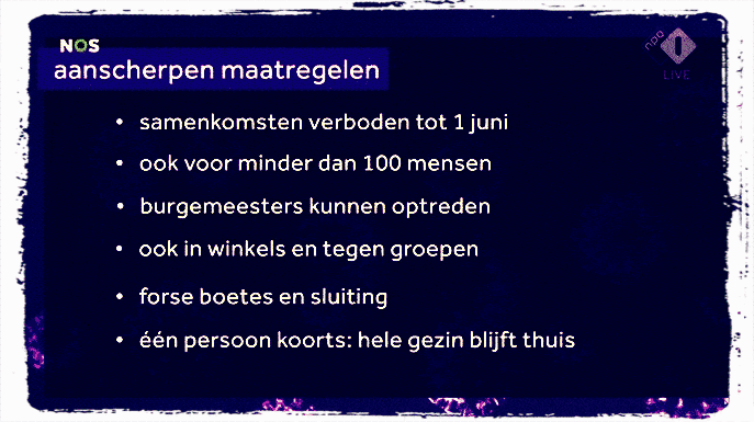 Filed under: Bekendmakingen overheid, Corona-virus, Overheid & Burger, Rijksoverheid, Wet- en regelgeving | Tagged: Aangescherpte maatregelen om het coronavirus onder controle te krijgen |