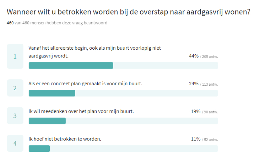 Als je de uitslag van deze enquête bekijkt dan lijkt het erop dat het nog een harde dobber wordt voor de gemeente Medemblik de inwoners ervan te overtuigen van de noodzaak van de overgang naar aardgasvrij wonen.