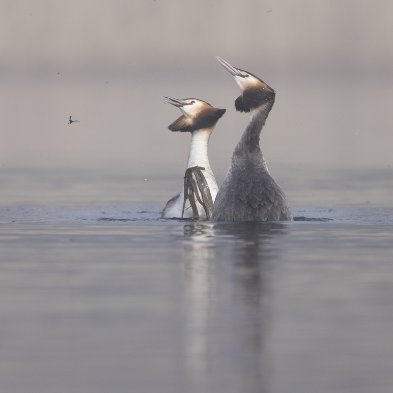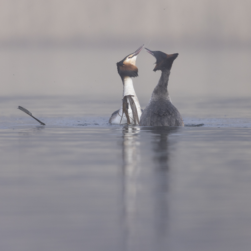 Ieder jaar weer bij het naderen van de lente een groot natuurspektakel om naar uit te kijken. Het meest bekende ritueel is de futendans waarbij waterplanten aan elkaar wordt aangeboden. De futen duiken onder, pikken waterplanten van de bodem op, zwemmen naar elkaar toe en zo tegen elkaar aan dat ze zich uit het water liften. Al watertrappelend borst aan borst, een schitterend schouwspel. Wanneer de vogels in dit ritueel weer wat zakken, wordt er vaak nog met wat cadeau materiaal geslingerd:) Bijzonder om te zien en vooral ook erg mooi om vast te leggen.