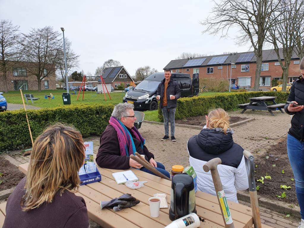 Een aantal mensen heeft zich vanmiddag al aangemeld als medetuinier, daarnaast hebben mensen ook al aangeboden om dingen als zaaitafels, tuinzitjes en andere zaken te gaan maken. En een kippenverzorger is er inmiddels ook…