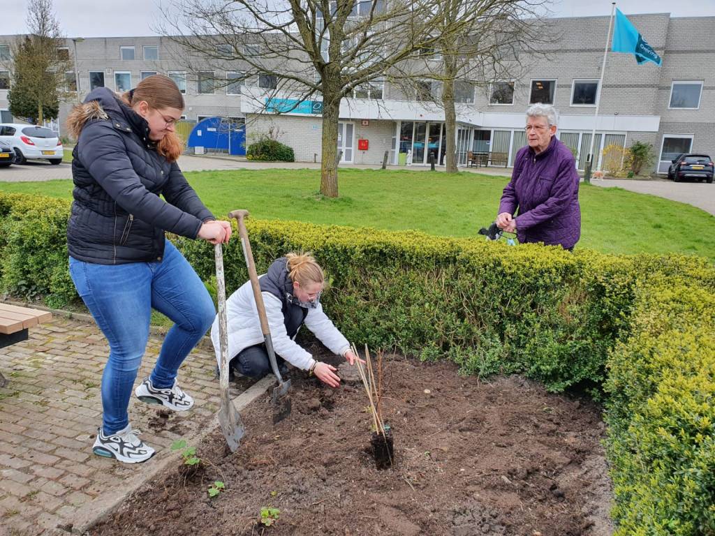 Planten en plantjes zijn gebracht en we kregen zelfs een appelboom! Volgende week ga ik een systeem bedenken waarmee iedereen die het Lief Plekje een warm hart toedraagt zich kan aanmelden, informeren, ideeen aandragen en samenwerken.