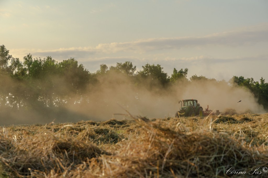 Snel naar huis gereden, met de maximum toegestane snelheid in acht houdend, fototoestel gepakt en hup weer terug. Gelukkig hij was er nog! En druk aan het werk! Het hooi werd geschud… Niet iedere weggebruiker vond dat fijn, maar het is een pracht gezicht. De tractor draaide het hooi met de hooischudder om, zodat het goed kon drogen. En dat deed het! Na een dag of 3 werden er mooie hooibalen van geperst, bestemd voor het vee wat op stal staat.