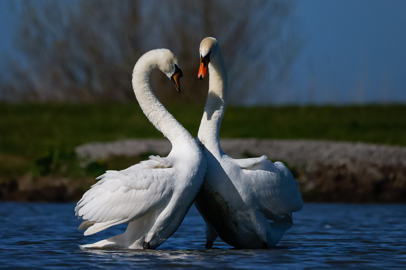 De balts van Knobbelzwanen prachtig te zien afgelopen weekend bij Gruttoland. Met het vormen van het hart altijd de grote fotografie-uitdaging.