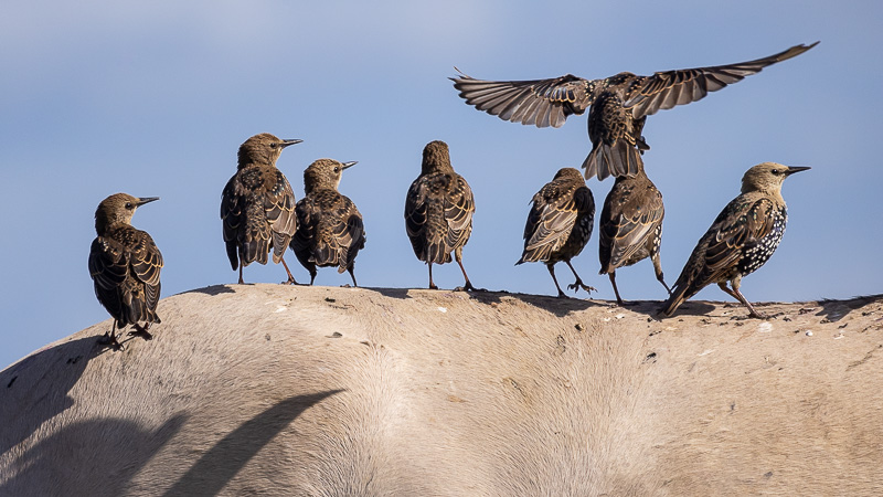 Waar Konikpaarden en spreeuwen in een gebied samen zijn zoeken de spreeuwen de paarden op. Voor het voedsel als o.a. vliegen die de paarden aantrekken worden door de spreeuwen op gefoerageerd, maar ook voor warmte met name tijdens de koudere maanden. Een warme paardenrug biedt dan warmte en veiligheid. Het is duidelijk zichtbaar dat de paarden met de extra vele spreeuwen na het broedseizoen spreeuwen lifters zijn, te zien aan de ruggen; een waar spreeuwen toilet ..