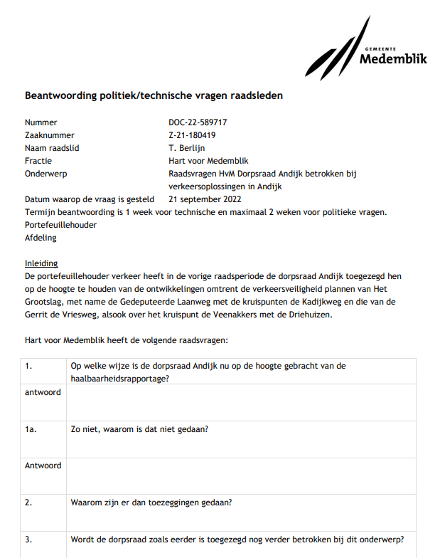 18:45 uur 21.09.2022 | Normaliter gaat er een week dan wel een paar weken overheen voordat het college van burgemeester en wethouders antwoorden geeft op de raadsvragen. Nu werden binnen paar uur de antwoorden gegeven van het college, dat is ongekend snel!