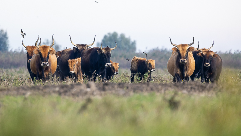 In de Oostvaardersplassen is 1 van de hoefdieren het Heckrund. Bijzonder mooie bontgekleurde runderen met zwart witte snoet 1 van de grote grazers van het gebied. De laatste boerenzwaluwen op trek pikken nog vele insecten mee die eind september nog volop aanwezig waren met de runderen als ‘magneet’.