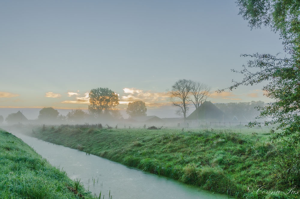 Ik reed met de auto richting de dijk, naar het IJsselmeer, maar dacht ineens: wat doe ik nou? Kans op grondmist heb je in de polder! Halverwege keerde ik de auto en reed de polder in. Zette de auto vrij snel aan de kant en maakte een aantal foto’s, maar was niet tevreden. Dan toch maar weer naar mijn “fotografeer plek”.