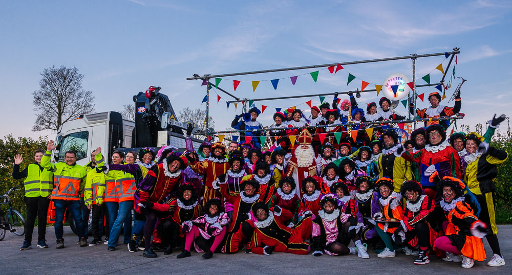 Sint en de Hoofdpiet staan in de koets en zijn klaar om samen met de Fietspieten, Motorpieten, Looppieten, Autopieten en Brandweerpieten met de optocht te beginnen! Kom je morgen weer kijken? Tussen 18:00 en 20:00 uur verschijnt de volgende serie foto’s! Misschien sta jij er ook wel op als je langs de route straat!