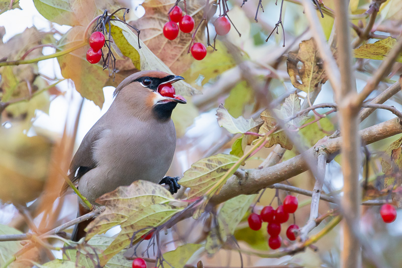 Sinds ongeveer een maand zijn er weer Pestvogels in ons land. Door langs bekende plekken uit het verleden te rijden waar Pestvogels zich hadden laten zien, kwam ik plots in Hoorn twee Pestvogels tegen op éénzelfde plek van een jaar of 6 geleden. Zonder geluid te maken; hun prachtige belletje https://www.vogelgeluid.nl/pestvogel/ viel me oog plots op 1 individu en later een tweede. Ze zaten in hun favoriete struik de Gelderse Roos langs een groenstrook in Kersenboogerd. Het is altijd een groot feest om ze te zien, zo kleurrijk en fotogeniek en bovendien tamme vogels doordat ze in hun broedgebieden in hoog Scandinavië bijna geen mensen tegenkomen.