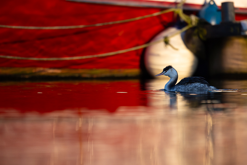 Vogels fotograferen in een (binnen)haven als in Enkhuizen is genieten met de camera en vooral van kleuren en spiegelingen! Een paar beelden van een Fuut in zijn winterkleed zwemmend in het rood en blauw naargelang de kleuren van de boten in de haven. In wintertijd zijn er ook altijd de wintergasten in de centrumhavens zoals de Grote zaagbek een vaste bezoeker en net als de fuut een zeer behendige visser. Foto’s gemaakt bij het late middaglicht- in de rug- en weinig wind voor de beste spiegelingen. Veel foto’s op zo’n moment zijn toch een verrassing en vanuit de kleurenpaletten verschijnen er ieder ogenblik weer andere beelden.
