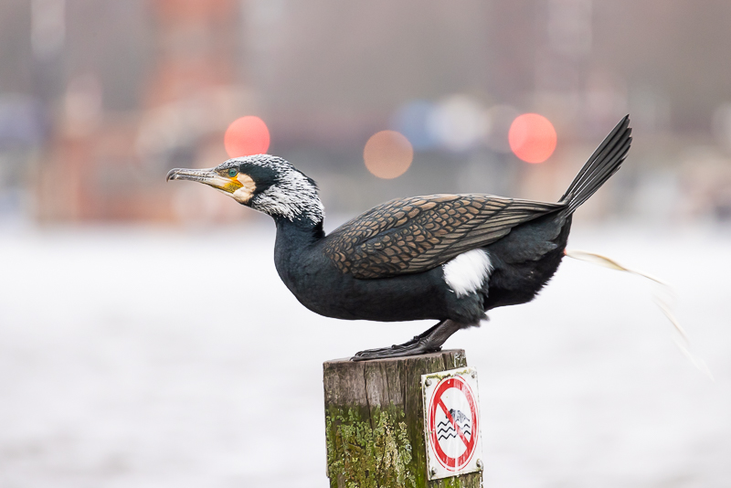 De Aalscholvers zijn weer volop met het broedseizoen bezig. Als 1 van de vroegste broeders in het seizoen veranderen zij hierdoor ook als 1 van de eerste in hun prachtkleed. Veel krijgen de witte kragen en op hun dij een witte broedvlek. Foto’s gemaakt begin februari midden in Amsterdam bij de Amstel waar op verschillende plekken de Aalscholver de palen in het water gebruiken als poets,- rust,- en toiletplek..