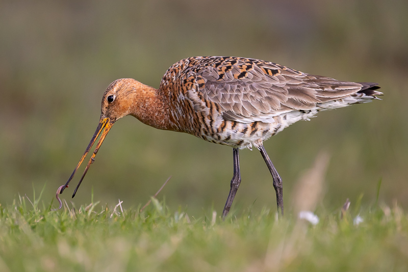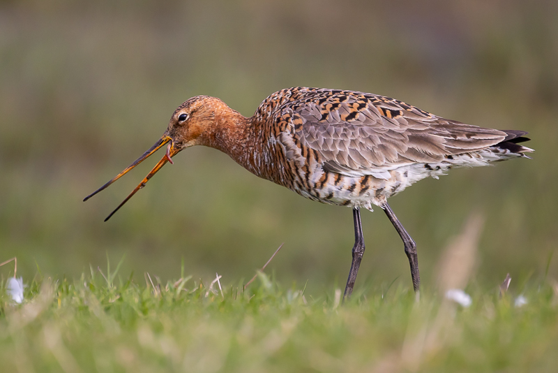 Een Grutto liep erg mooi op een verhoogd land bij de Zaanse Schans en was volop aan het foerageren. Getuige met de camera hoe een wormpje werd gevangen en vakkundig werd ingeslikt. Onze koning van de weide wat is het een mooie vogel en prachtig om hem van zo dichtbij in volle kleurenpracht te zien. De uiteinden van de snavel zijn zeer flexibel voor het ondergronds nauwkeurig kunnen poeren en manoeuvreren naar de wormen. Wat goed te zien is op foto drie.