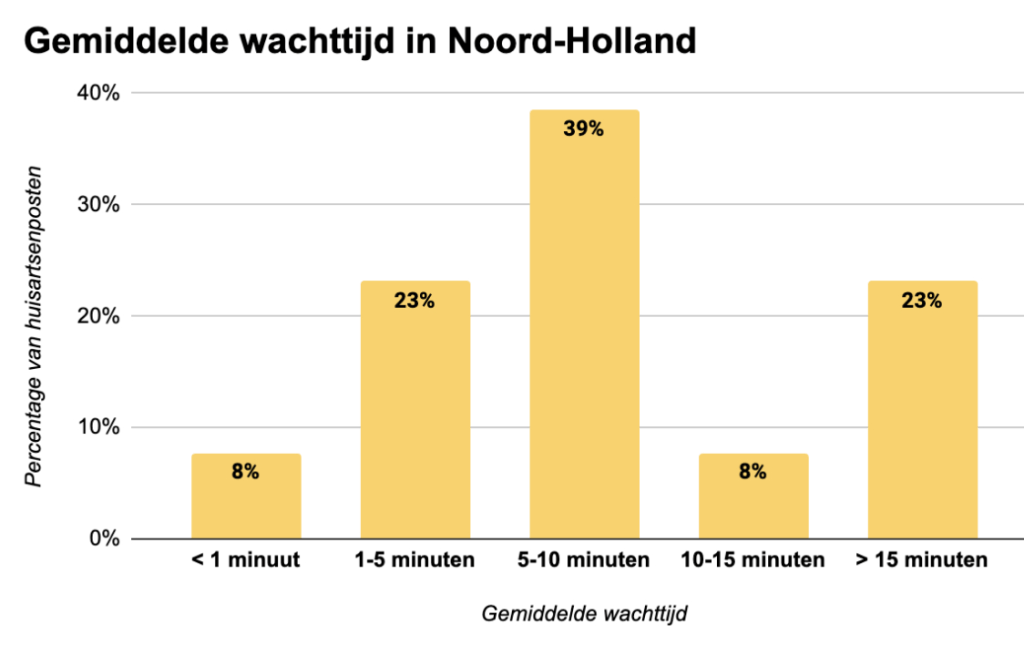Met name bij huisartsenpost Amsterdam (50 minuten), huisartsenpost Haarlem (23 minuten) en huisartsenpost Zaanstreek (15 minuten) blijkt de wachttijd gemiddeld erg hoog.