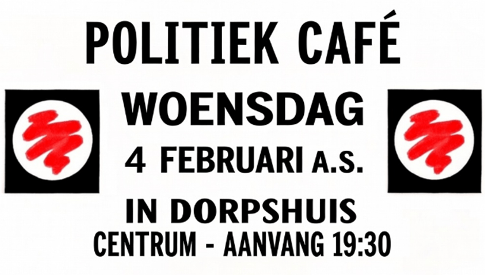 Filed under: Dorpshuis Centrum, Politiek | Tagged: Politiek Café - woensdag 4 februari in Dorpshuis Centrum - aanvang 19:30 uur |