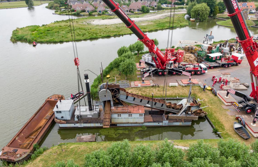 Medemblik- Het Nederlands Stoommachinemuseum berichtte in het afgelopen jaar geregeld over de laatste kolengestookte emmerbaggermolen van Nederland. Deze baggermolen van de firma Krikke uit Heerenveen werd na een halve eeuw baggeren in 1991 uit de vaart genomen. In 2005 kwam de ‘Vooruit’ met baggerbak in de museumhaven van het Stoommachinemuseum te liggen. Er werd sindsdien geschuurd, geschilderd, gelast, de ketel en machines werden schoongemaakt, gereviseerd, gerestaureerd en op veiligheid gekeurd. Dankzij de grote inzet van vrijwilligers werd de ‘Vooruit’ niet alleen behouden, maar zelfs weer onder stoom gebracht. In 2009 was het zover: de ketel werd opgestookt en langzaam kwamen de emmers die op tal van locaties in Nederland bagger van de waterbodem hadden geschept, na 18 jaar weer knarsend in beweging. Sindsdien is op stoomdagen de baggermolen van buiten, van binnen én in beweging te bewonderen.