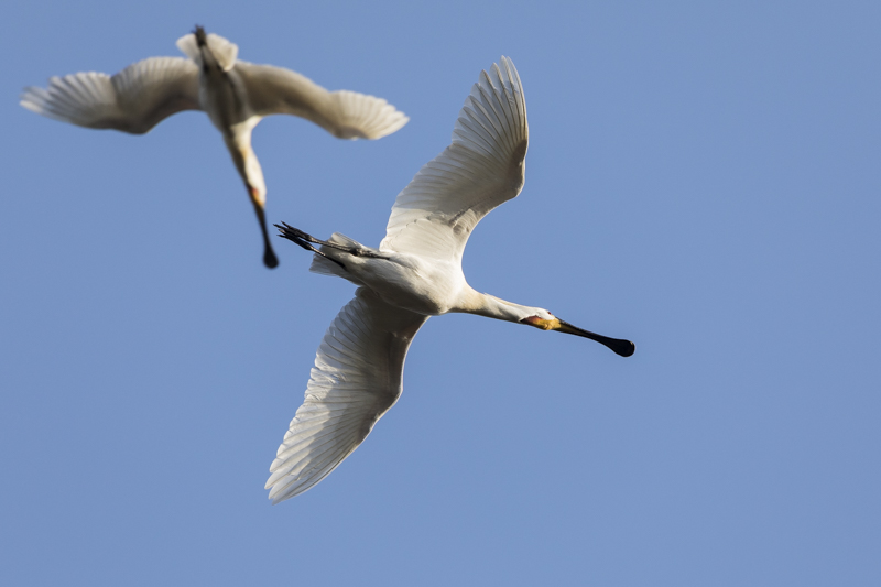 Sinds eind februari zijn de eerste lepelaars al weer gearriveerd in ons land en wordt er gepaard en hard gewerkt aan de nestbouw. De meesten zijn ook bij de Liede weer terug en kun je ze vrij gemakkelijk in de vlucht vangen vanaf het fietspad, indrukwekkende en sierlijke vogels.