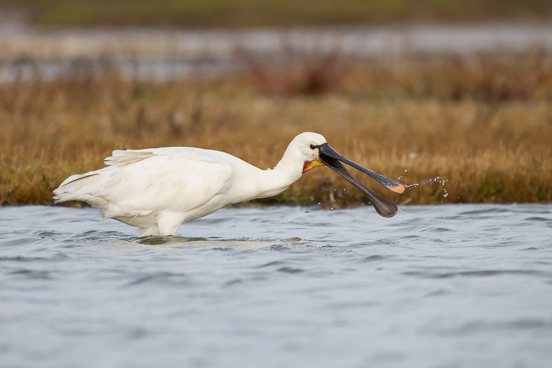 Het is een fascinerend gezicht om een lepelaar te zien vissen. Tijdens de vogelsafari op Texel op 2 oktober foerageerde deze lepelaar van heel dichtbij bij natuurgebied Ottersaat. 1 van de vogelhotspots van de vogelboulevard aan de Oost/Waddenkant van het eiland. Een prachtige volwassen vogel die zich aan het opvetten was voor de trek. Al vliegen de meeste lepelaars in de najaarstrek naar het Zuiden al vaker blijven er enkelingen ook gedurende de wintermaanden hier hangen.