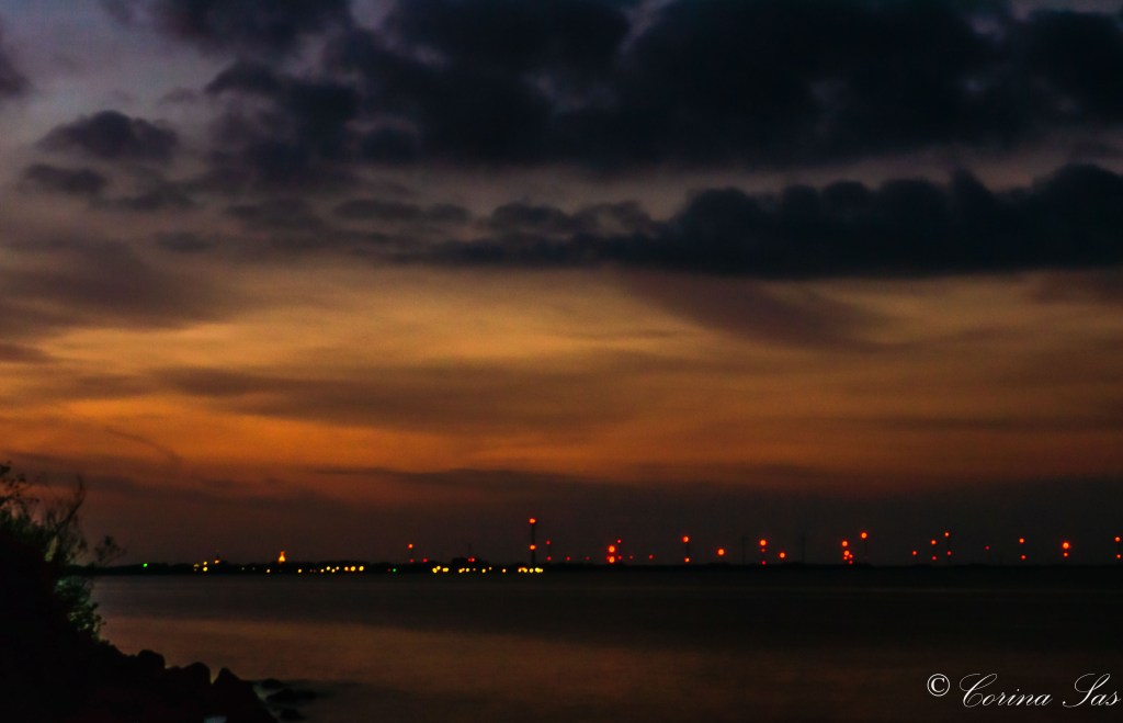 Ik zag dat de zon al onder was. De donkere oranje gloed van het zonlicht hing net nog boven Medemblik en de Wieringermeer. Oké, nog even dan. Maar er is geen enkele lantaarn daar op die brug over De Kom. Sterker nog helemaal geen licht daar op de Vooroever! Wel het licht van de maan. Ik was niet alleen, er zat wat jeugd te chillen daar aan het IJsselmeer. Dus statief met fototoestel verzetten en gericht op Medemblik en de polder de Wieringermeer. Wat een lichten van al die windmolens, jullie mogen zelf bepalen of dat écht wel mooi is. Maar goed we moeten het ermee doen en dan maak je er wat van… En klik… maar de lens reageerde niet dus “klik” lukte niet. Uiteindelijk wel…De volgende dag teruggegaan en nog een keer geprobeerd. Maar had niet hetzelfde effect zoals op deze foto: de lichtjes van de skyline van Medemblik en de Wieringermeer in de bewolking die aan komt drijven, met daarboven het laatste licht van de zon. Ik had wel hetzelfde “effect” met de scherpstelling van de lens: de lens is inmiddels gelukkig weer gemaakt!
