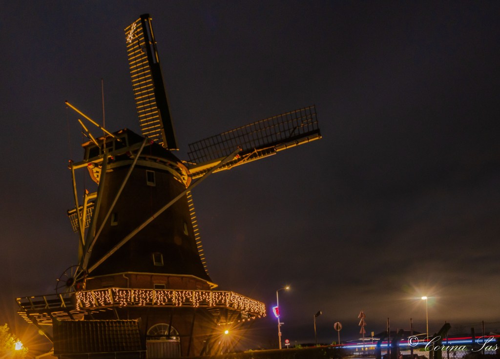Op de avond dat Sint-Nicolaas zijn intrede doet met een prachtige lichtjes optocht in Andijk ben ik op weg naar Wervershoof. Waarom: Iemand heeft eens gevraagd of ik de mooi verlichte kerk van Wervershoof op de foto kon zetten. Goed voorbereid zat ik in de auto: veiligheidshesje aan, een lampje op m’n hoofd en het fototoestel -gedeeltelijk ingesteld- ligt met het statief naast me op de bijrijdersstoel.Ik rij halverwege de Kleingouw en daar zie ik in de verte een groepje mensen aan de kant van de weg staan.
