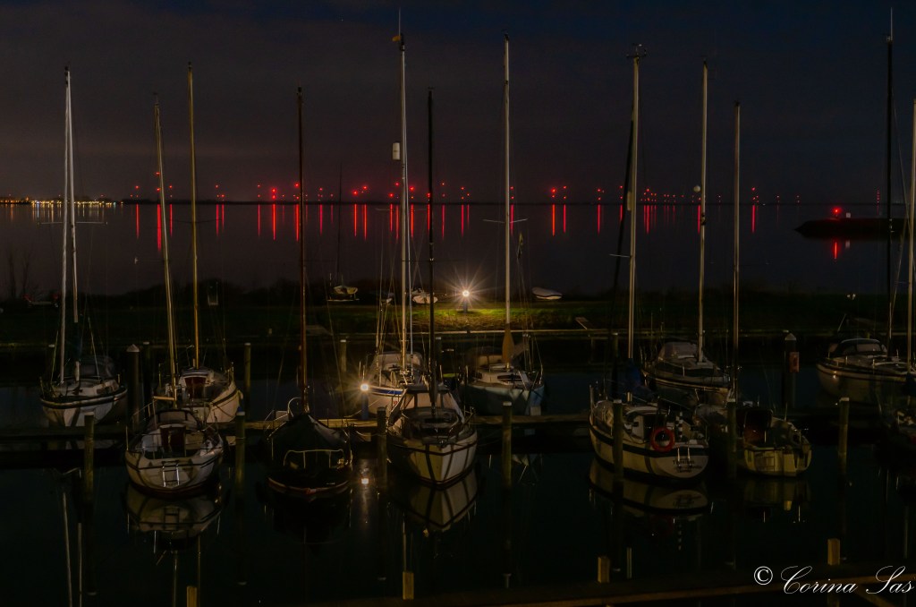 Een aantal weken geleden heb ik jullie twee avondfoto’s laten zien: De spiegeling van de maan in het water en de skyline van de haven van Andijk. Beide gemaakt op de Vooroever bij Andijk. Het werd toen al behoorlijk donker en mijn aandacht was nog steeds richting Andijk totdat ik had bedacht om richting Medemblik te kijken met het idee of het ook de moeite waard was om daarvan ook een foto te maken.