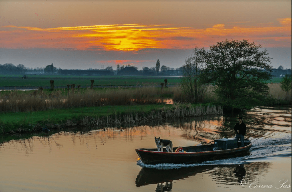 Wat is dat toch mooi: een tocht met de motorschuit door het West-Friese landschap. De schuit vaarde van Onderdijk, via het Egboetswater naar de Broerdijk langs Oostwoud. Daarna gingen we door Twisk, langs Lambertschaag, waar we uitkwamen op het water wat naast de Westerzeedijk/N239 loopt. Op een gegeven moment wees de vaarroute naar Opperdoes. En deze bracht ons van Opperdoes naar Medemblik om dan via de wateren van Medemblik, de kleine en de grote vliet, weer terug te varen naar Onderdijk.