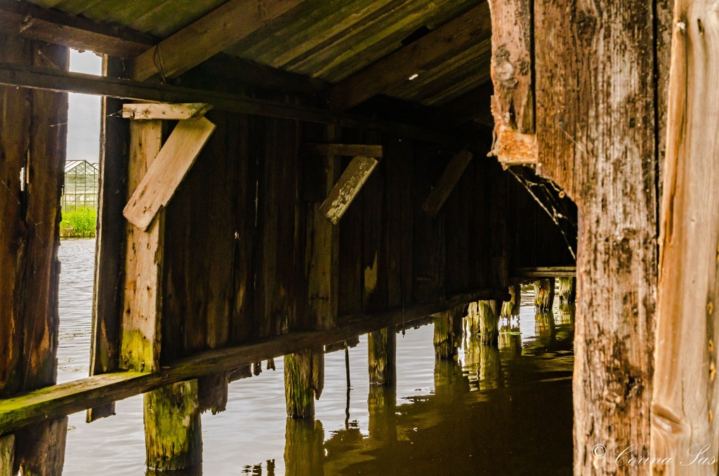 Vaak reed ik er voorbij zonder er enige aandacht aan te besteden en dat zal menigeen ook zeker hebben gedaan. Totdat het licht en de stand van de zon er invloed op kreeg. De foto van de tunnelkas is gemaakt toen het windstil was en als gevolg daarvan kreeg je een rimpelloze spiegeling in het water. Die spiegeling maakte het zo dat je nu op de foto helemaal geen tunnelkas, maar iets heel anders kunt zien.
