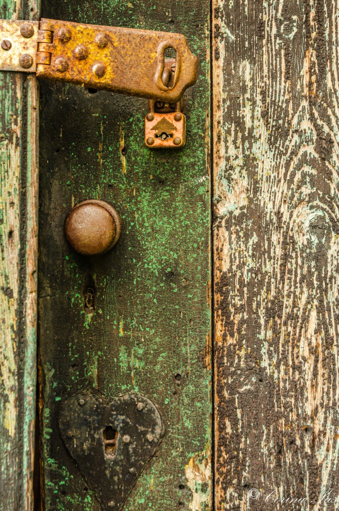Bij het maken van de foto had ik alleen oog voor de tractor achter de schuifdeur, de schuifdeur die de helft van het tractorwiel bedekte. Niets is in scene gezet. Toen de foto eenmaal gemaakt en bewerkt was zag ik meer: de schuifdeur zat ook precies tot de helft van het raam welke zich boven de deur bevond.