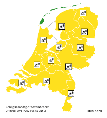 Code Geel: Vanaf zaterdagavond grote kans op gladheid door winterse neerslag