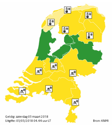 KNMI: Code geel – Snijdende kou, vanavond van het zuiden uit sneeuw