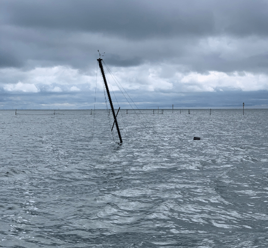 De meeuwen en aalscholvers gebruiken de palen als rustpunt, zullen zij dan toch een beetje achter het net vissen?
