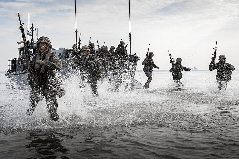 Van 30 april tot en met 4 mei oefent het de ‘Surface Assault and Training Group’ (SATG) op en rond het de Vooroever in Medemblik. De SATG heeft amfibische middelen, vaartuigen en bijbehorende voertuigen en verzorgt de amfibische inzetbaarheid van de krijgsmacht wereldwijd. De cursisten gaan zowel overdag als bij duisternis landingen oefenen. Foto Defensie