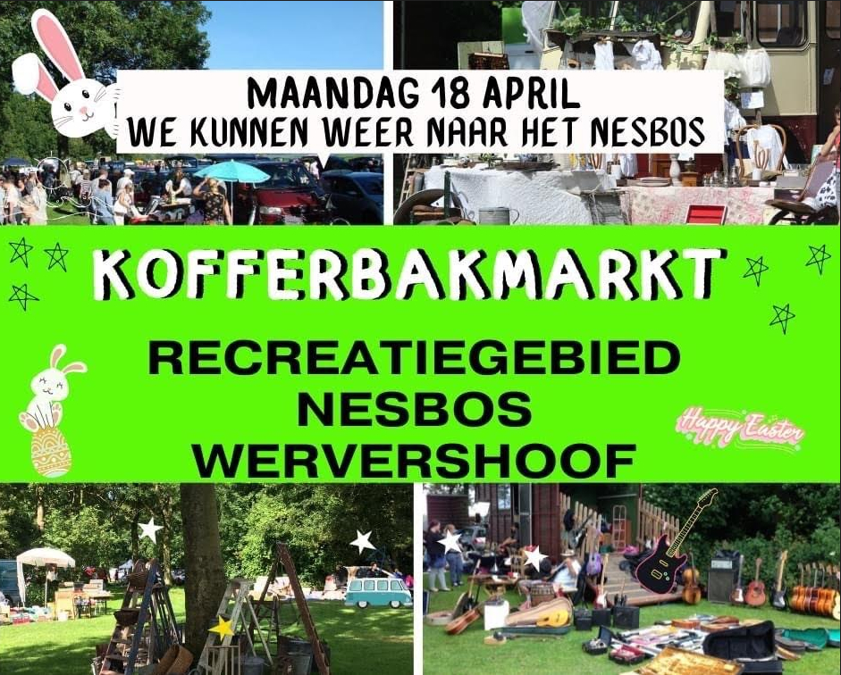 Zondag 1 mei wordt de zeer populaire kofferbakmarkt in Wervershoof gehouden. Op het terrein van recreatieschap West Friesland het Nesbos gelegen aan de Oosterdijk, zijn die dag weer vele uitgeladen kofferbakken met een diversiteit aan gebruikte goederen.